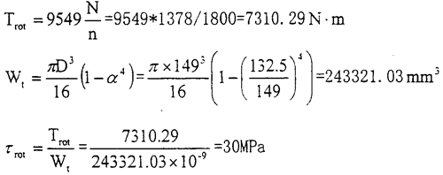 根據(jù)實(shí)際情況計(jì)算出工作時(shí)的剪應(yīng)力:GK2型內(nèi)燃機(jī)車啟動(dòng)發(fā)電機(jī)ZQF-38TH,115V,38KW,1170~358Or/min;GK2型內(nèi)燃機(jī)機(jī)用柴油機(jī)型號(hào)為MTU16V396TC14,持續(xù)功率為1378KW,旋轉(zhuǎn)角速度為18O0rad/min。柴油機(jī)冷區(qū)液溫度為40℃時(shí)最小啟動(dòng)轉(zhuǎn)矩包括加速余量約8OON.m,曲軸扭矩約75ON.m