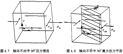 (1)軸向不對(duì)中90°位置:當(dāng)圓環(huán)上的單元體旋轉(zhuǎn)到最上方時(shí),也就是90°位置時(shí),單元體的應(yīng)力如下圖所示。