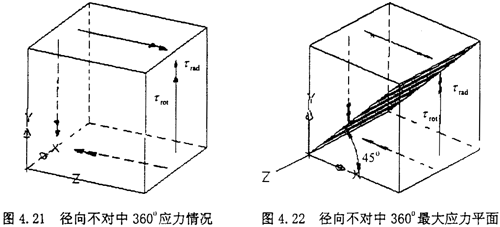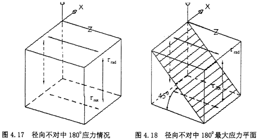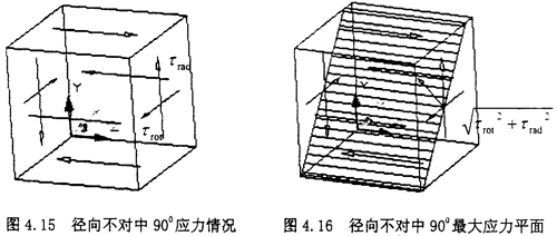 由圖示可知,此時單元體的受力其實是屬于純剪切狀態,只是此時的剪切應力為τrad與τrot的疊加。此時剪應力τrad與τrot的方向相反。所在最大應力有所抵消。