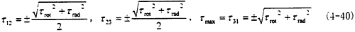 由圖示可知,此時單元體的受力其實是屬于純剪切狀態,只是此時的剪切應力為τrad與τrot的疊加。其分析過程與徑向不對中1800時的情況相似,只是這時τrad與τrot的方向相同,而在1800時方向相反,所以有
