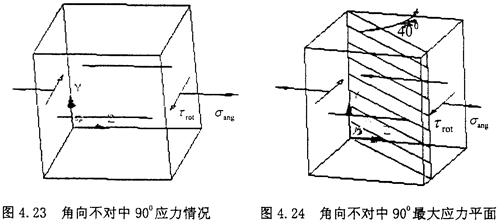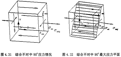(l)綜合不對中90°位置:當圓環上的單元體旋轉到最上方時,也就是90°位置時,單元體的應力如下圖所示