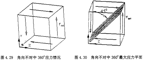 通過角向不對中的分析可以知道,具有角向不對中的聯軸器受力情況仍然屬于兩向應力狀態,即只有拉扭結合與純剪切的情況發,沒有三向應力狀態,比較四個位置的最大主應力