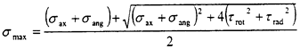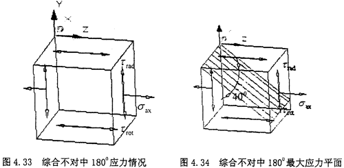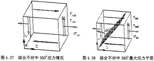 這時取σax=10.6MPa,τrad=10MPa,σang=10.6MPa,代入式(4-49)中,可以得出最大主應力為σmax=