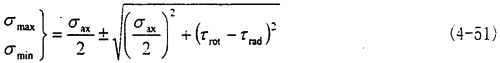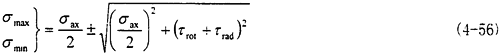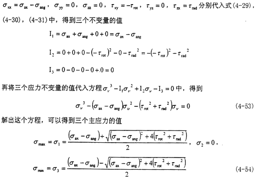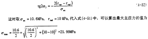 這時取σax=10.6MPa,τrad=10MPa,代入式(4-56)中,可以得出最大主應力值為