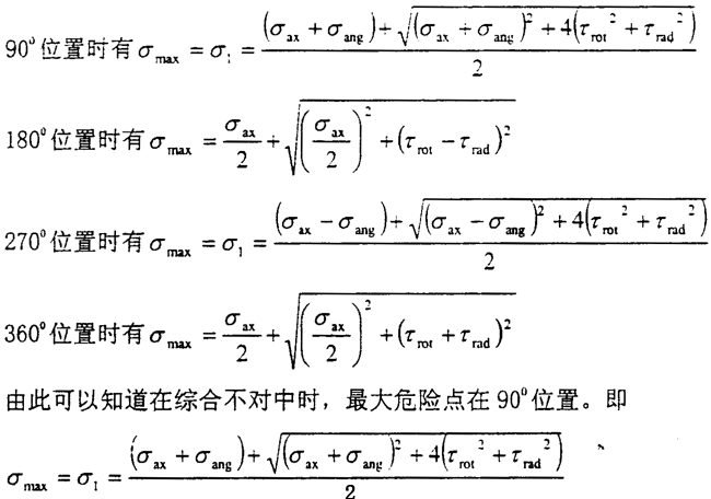 此時的受力仍然屬于兩向應力狀態,因為徑向不對中產生的剪應力方向和扭轉產生的剪應力的方向在同一平面上而且相互平行。根據計算可以知道
