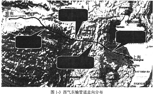 西氣東輸工程是我國在新世紀(jì)啟動(dòng)的最大的建設(shè)工程之一,是西部大開發(fā)的標(biāo)志性工程。工程西起新疆塔里木盆地的輪南氣田,經(jīng)甘肅、寧夏,進(jìn)入陜西,在靖邊與長慶氣田連接,經(jīng)山西、河南、安徽、江蘇、浙江,東抵上海。