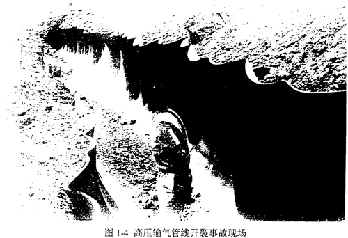 圖1-4為高壓輸氣管線開裂事故現場