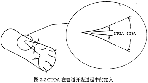 裂紋尖端張開角CTOA(Crack Tip Opening Angle)最早被用來分析核電站管路的穩態裂紋擴展,后來用于輸氣管線和航空工業。如圖2-2,與裂紋張開角COA不同,CTOA對應于一定的斷裂擴展狀態,不隨測量點的位置而改變。CTOA在數學上可以按下式定義: