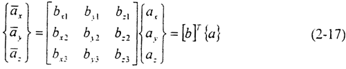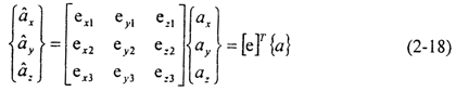 對于總體坐標系中的任意矢量a,其在節點坐標系中的分量可以表達為: