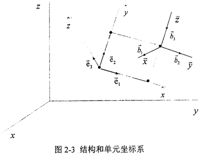 ●節點坐標系行(),反映節點的平動與轉動;正交基矢量為bi