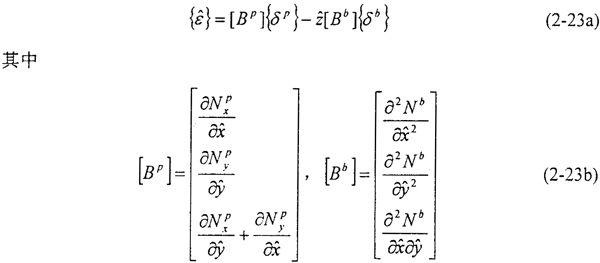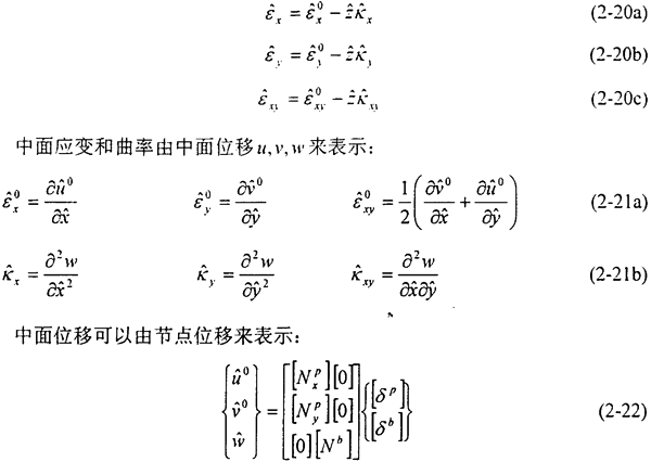 基于Kirchhoff假設的板殼單元,殼體中某一點的應變可以由中面應變和曲率來表示: