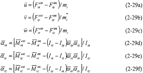 將方程(2-28)代入方程(2-24)和(2-25),可得到各節(jié)點(diǎn)的加速度與角加速度: