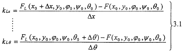 0,ψ0,θ0)外,由于L方向的微小位移,在H方向上增加的力。L=H為主剛度,L≠H為叉剛度。