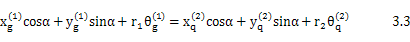 ( xl-x2)cosα+(y1-y2)sinα-r1θ1-r2θ2-(k1+k2)P=ε 3.4
