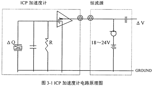 典型的集成壓電式(ICP)加速度計是在傳統的壓電加速度計基礎上耦合一個以場效應管為核心的內裝放大器電路所構成。電路原理如圖3-1所示。