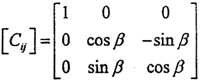 如圖2-21所示,坐標系OXjYjZj可以看作是坐標系OXiYiZi繞Xi(或Xj)旋轉了一個角β度。旋轉的方向余弦矩陣為: