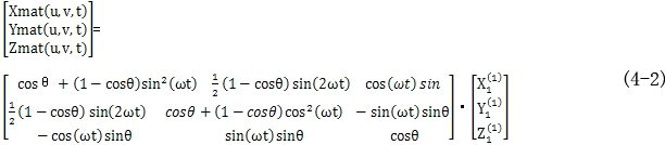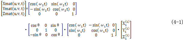 這種相對擺動的結果形成一個直齒面的包絡面,在直齒面擺動的任何位置,兩者都共軛線接觸。利用兩坐標系的幾何關系和空間坐標變換,直齒面在靜坐標系中形成的曲面族可用下式表示為