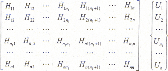 將(5-40)式離散并用矩陣表示,則可得共軛鼓形齒輪傳動的接觸邊界元方程