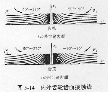 角標Ⅰ、Ⅱ——相應兩個接觸的相互共軛的鼓形外齒輪和直齒內齒輪;