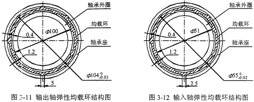 金屬均載環可以制成整體式或沿軸向分成幾段,在安裝均載環時使其上的凸臺均勻錯位,能夠更好地改善軸承及整個三環減速機的受力狀況。采用均載環彈性支承時,其外凸臺與箱體接觸,內凸臺套在輸出(入)軸支承軸承外圈上,均載環應有適宜的剛度和足夠的強度。從均載性能上來看,三環減速機的輸出(入)軸支承端采用滾動軸承,外阻非常小,如果采用彈性支承,則彈性支承的應變是交變的,所以,彈性均載環可以使三環減速機的內齒環板和輸出齒輪均載。另外從降低輸出(入)軸的振動來看,彈性均載環的支承剛度較低,支承的位移變大,其阻力也變大,所以,彈性均載環可以使輸出(入)軸減振。三環減速機采用金屬均載環作為支承,其剛性相對于輸出(入)軸來說是非常低的,可以忽略不計,這種彈性支承稱為低剛性彈性支承。三環減速機工作時輸出(入)軸近似于絕對剛性。