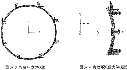 一般來說,由均載環結構的對稱性可知其各離散環弧段具有相同的剛度k,于是各離散環弧段的支反力為:
