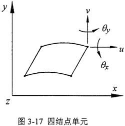 由上述分析可知:均載環離散成八個對稱的環弧段,因此均載環總體剛度的計算歸結為求解其離散的環弧段的剛度。本章利用I-DEAS分析軟件計算內、外表面各均勻分布八個凸臺的輸入、輸出軸彈性均載環的離散環弧段的剛度,從而得到均載環的總體剛度。對于圖3-15所示的離散環弧段,內凸臺的受力沿+x方向,并且在沿軸向方向上均勻分布,所以只需考慮xy平面內的形變分量和位移分量即可,可以認為是平面應力問題。在單元選擇上,選用“平面應力問題”中的四結點單元,定義單元的四結點厚度與彈性均載環的寬度相一致。四結點單元如圖3-17所示。
