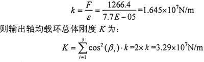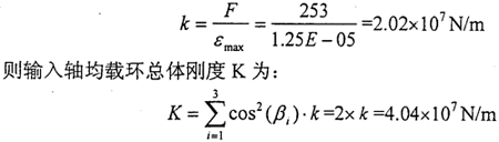 由上述的輸入軸均載環的實際結構參數,可以求出輸入軸均載環環弧段的剛度為: