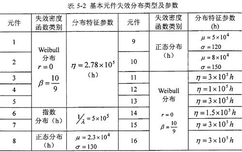 表5-2基本元件失效分布類型及參數