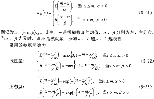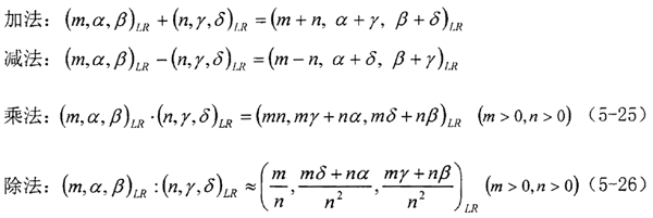 式(5-25)、(5-26)是近似的,嚴格地說,兩個L-R型模糊數相乘或相除,其結果不再是L-R型模糊數。