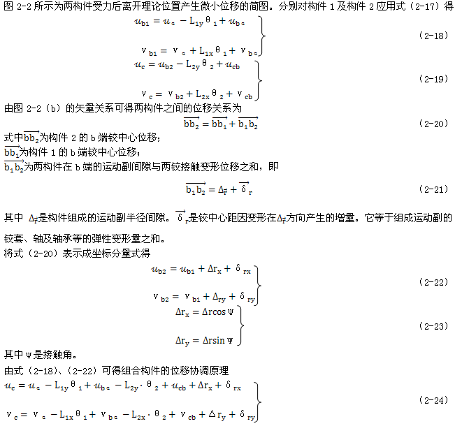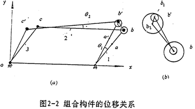 由于構件與構件之間存在運動副間隙,因此組合構件上任意兩點之間的位移關系,可能包括有間隙位移在內(nèi)。