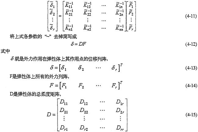 式(4-19)就是用有限元法通過(guò)加單位載荷求得的彈性體柔度矩陣