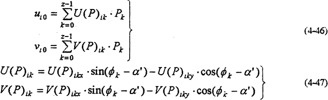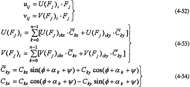 式(4-51)~(4-53)中U(Fj)ikx,U(Fj)iky,V(Fj)ikx,V(Fj)iky為行星齒板柔度系數的值,由磁盤文件提供計算。Ckx,Cky由式(4-30)及式(4-33)計算。