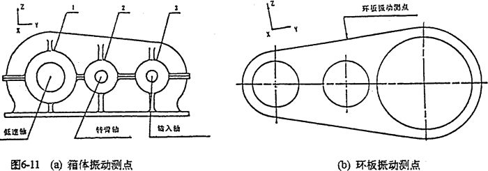 為了將理論分析的結果與振動測試分析結果對比印證,將測點選在三個箱體軸承座及齒板支承軸孔的上邊緣,如圖6-11所示。