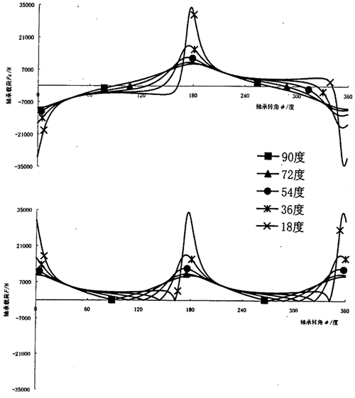 圖3.15 連桿相位角對(duì)輸入軸連桿軸承周期載荷的影響