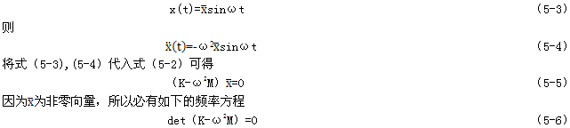 將各階固有頻率ωi,(i-l,2,…,n)依次代入方程式(5-6)便得到n個特征向量,即系統的n個主振型。主振型與固有頻率是一