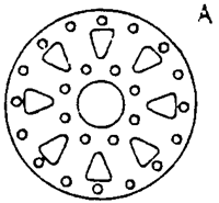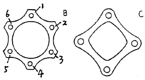 疊片聯軸器的結構如上圖所示,其兩邊各有一組疊片,左側聯接發動機的法蘭盤,其中三個主動螺栓(如1,3,5)與疊片組相連,三個從動螺栓聯接疊片組與中間軸的法蘭盤。右邊一組同理。在傳遞扭矩時,一部分金屬疊片被拉伸,另一部分受到壓縮而趨向波折。當存在軸向、徑向和角向偏移時,疊片產生波狀變形。