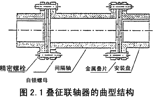 兩種系列的聯軸器除疊片及連接情況不同外,結構型式基本相同。從使用上來著眼,疊片組可為單組或雙組,各組疊片都均勻承擔一定比例的不對中(每組疊片所允許的角不對中一般不大于1/2度,但特殊設計時每疊片組可承受1——2度的不對中),疊片厚度一般為0.3——0.38mm,采用冷軋薄板沖壓成型。