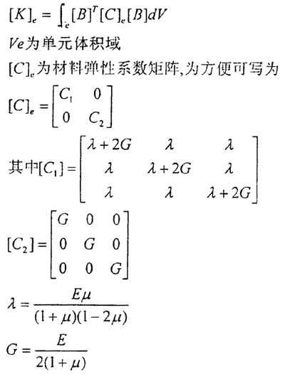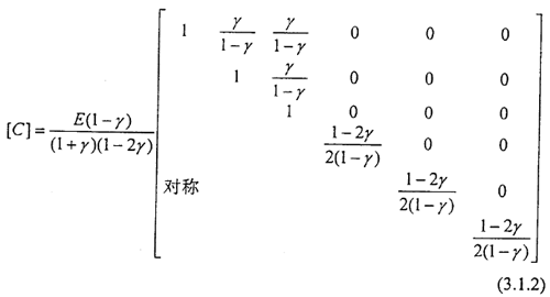 對(duì)各項(xiàng)同性材料而言,彈性矩陣[C]為: