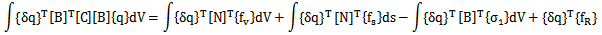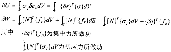 對(duì){δq}的任何分量,總位能原理總能成立,所以在整個(gè)域中對(duì)所有單元求和,有