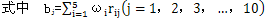 根據表5-1可分別計算得到各因素等級的權重集Wi