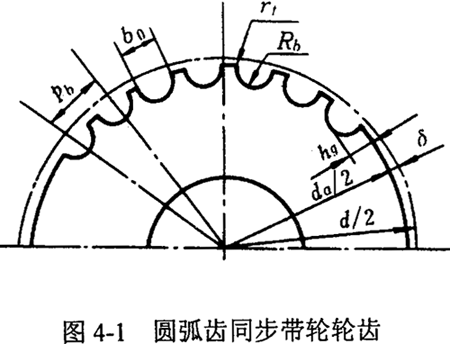 2.同步帶輪的設(shè)計(jì) 與同步帶相對(duì)應(yīng)的帶輪的型號(hào):5M。節(jié)距pb=5,小帶輪的齒數(shù)Z01=40,大帶輪的齒數(shù)Z02=80,帶輪的其它參數(shù)見(jiàn)表4-1和圖4-1。