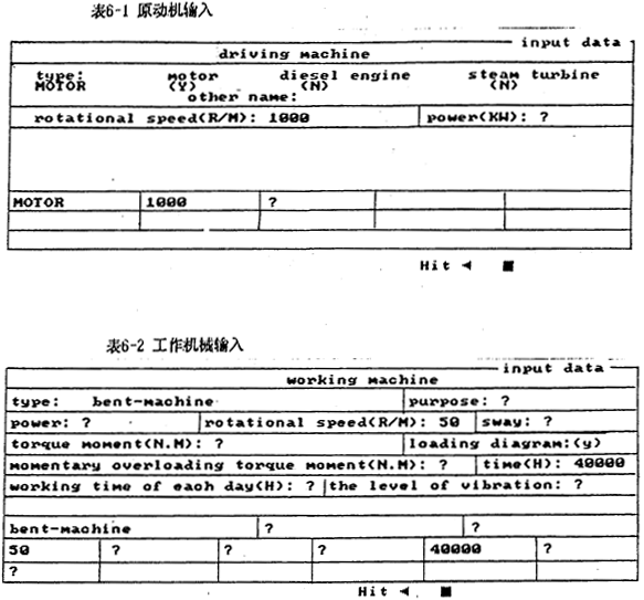 系統的輸入是專家系統的“開場條件”,人工設計的方法是由定貨單位向設計人員提供任務書(以口頭或書面形式),設計人員通過這些已知條件進行設計工作。專家系統則要求設計人員(或由定貨人員)與計算機進行“對話”,以便使專家系統了解原始的已知條件。事實上,由于受人工智能和計算機技術發展的限制,還不能同計算機形成視、聽對話,因而,圓柱齒輪減速器設計專家系統仍采用傳統CAD所采用的方法,即采用精確的輸入方式(或稱數據輸入方式而非語言物入方式)。