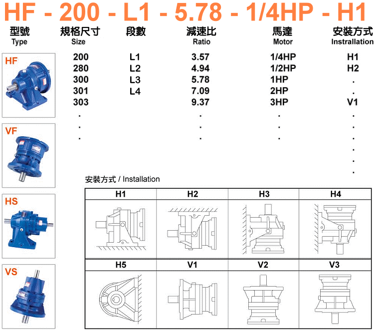 三亞減速機臺灣制造TYPE: HF 臥式直結型∶Horizontal Flange Type ... 2017-8-8 |