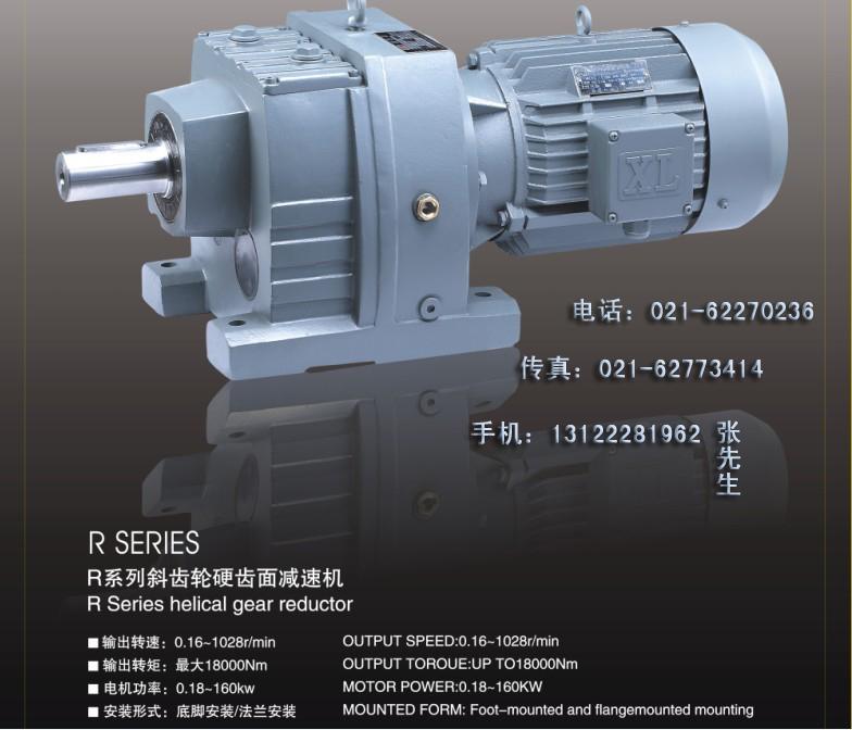 R系列斜齒輪減速機減速機減速機為硬齒面的斜齒輪減速機,齒輪材料全部采用20CrMnTi,經滲碳淬火處理,齒面硬度達58-62HRC,磨齒后精度可達6級,以確保減速機減速機的可靠性及低噪音。減速機主要傳動部位軸承均選用進口軸承,密封件選用臺灣的骨架油封,所配功率從0.09KW-160KW,輸出扭矩可達20N.M-14800N.M,速比可從(配4極電機)1.6-264,可分一級傳動(傳動效率可達98%),二級傳動(傳動效率可達96%),三級傳動(傳動效率可達94%);如配6極或8極電機可獲得更低的輸出轉速;如需更低的輸出轉速可用采用雙級減速機組合的形式,可獲得較低的輸出轉速(一萬多速比)。以上如在輸入端配上無級變速機更可實現變速的要求。有底角安裝和法蘭安裝兩種,輸出軸為實心軸(或非標制作),可在不同方位及角度安裝使用,可正反轉使用。減速機減速機可配不同類型的電機(普通電機、單相電機、防爆電機、變頻電機、制動電機等)。R系列斜齒輪減速機廣泛應用于食品糧食機械、印刷包裝機械、立體車庫設備、環保機械、輸送設備、化工設備、冶金礦山設備、鋼鐵電力設備等等(市場上已采用此類產品代替擺線針輪減速機以滿足更高的要求)