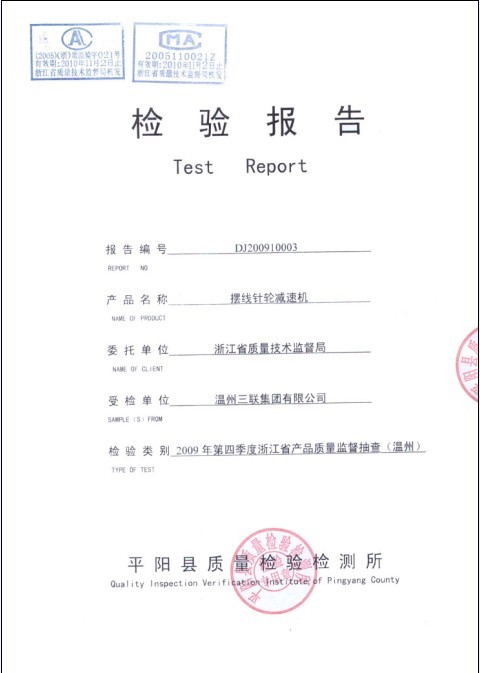 溫州聯博機械有限公司擺線輪檢測報告2